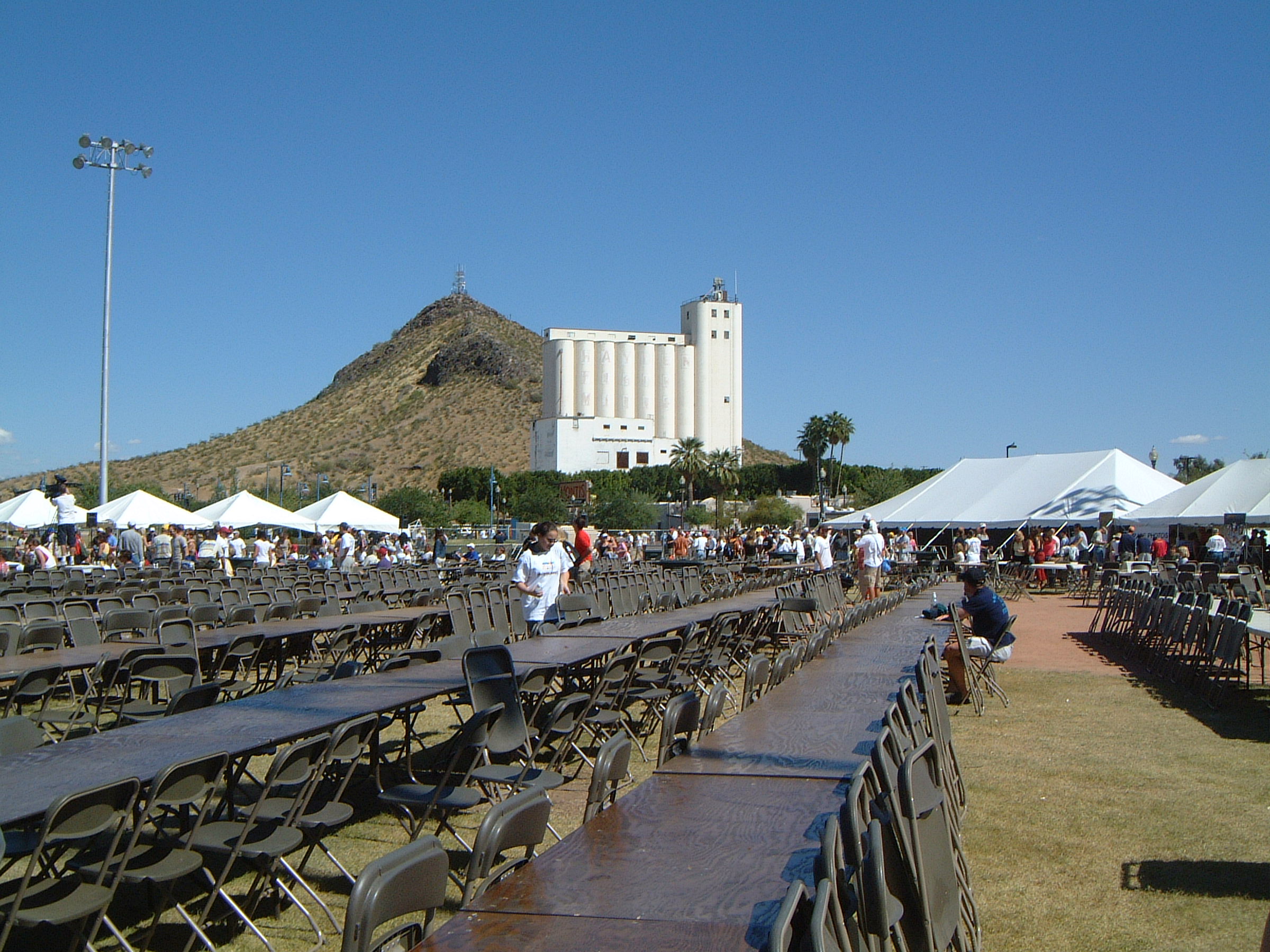 In 2004, we had a heads up that Ironman was coming to Tempe – someone found minutes from a council meeting which detailed the proposal, so we were all prepared to sign up when the date for the Inaugural Ironman Arizona was announced. The time of year is about a month too early for me, as it meant I would need to be out in Tucson preparing from the start of March, when the weather is still quite cool. However, this race was really all about the fact that soooo many of my friends were going to be there…plus the fact that I had spent over a year of my life training in the desert only 90 miles away. Everyone said that the weather was pot luck – it could be cool, it could be perfect or it could be hot – it turned out to be cool on race day.